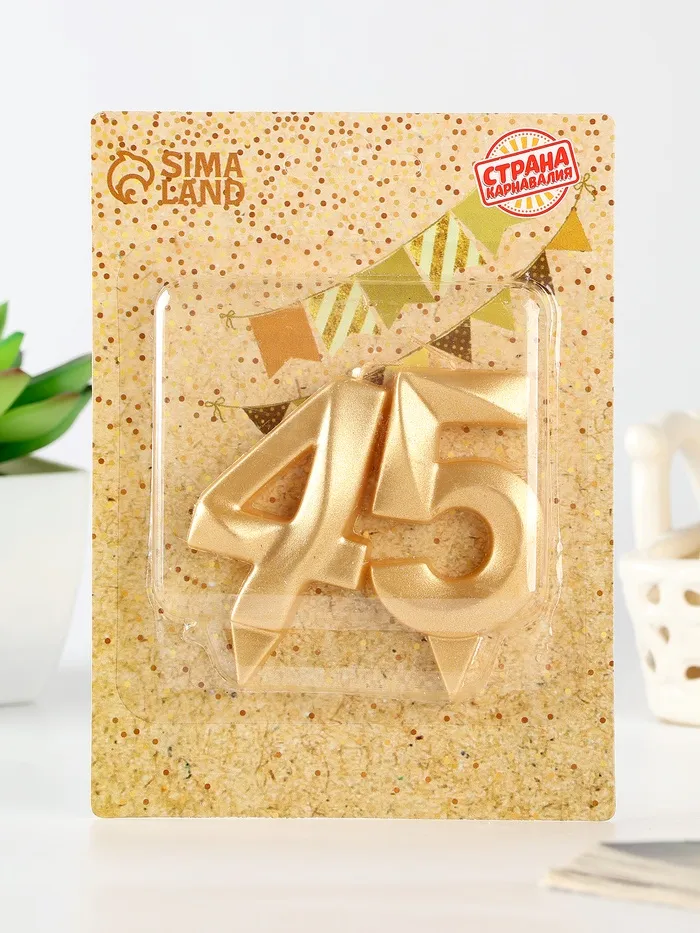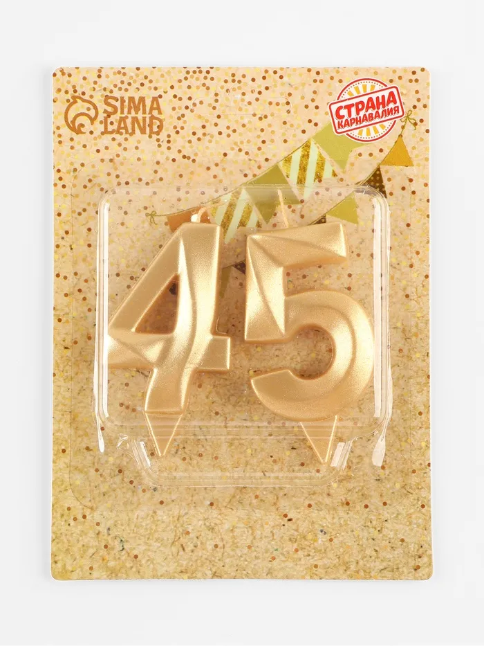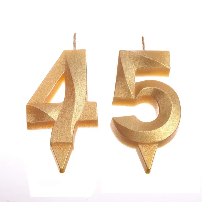 Свеча в торт юбилейная «Грань» (набор 2 в 1), цифра 45, цифра 54, золотой металлик, 6.5 см — Характеристики