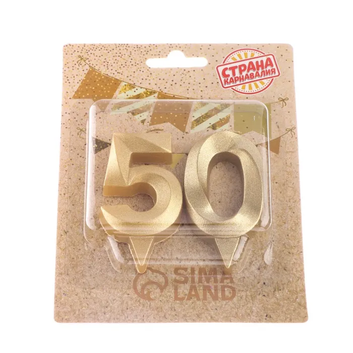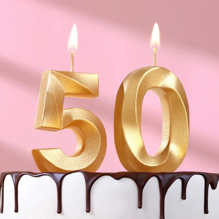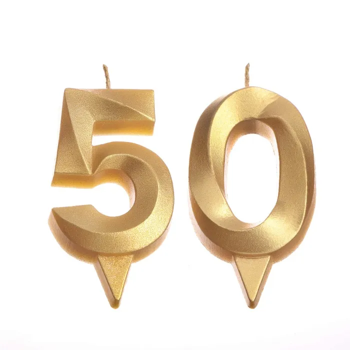 Свеча в торт юбилейная «Грань» (набор 2 в 1), цифра 50, золотой металлик, 6.5 см — Характеристики