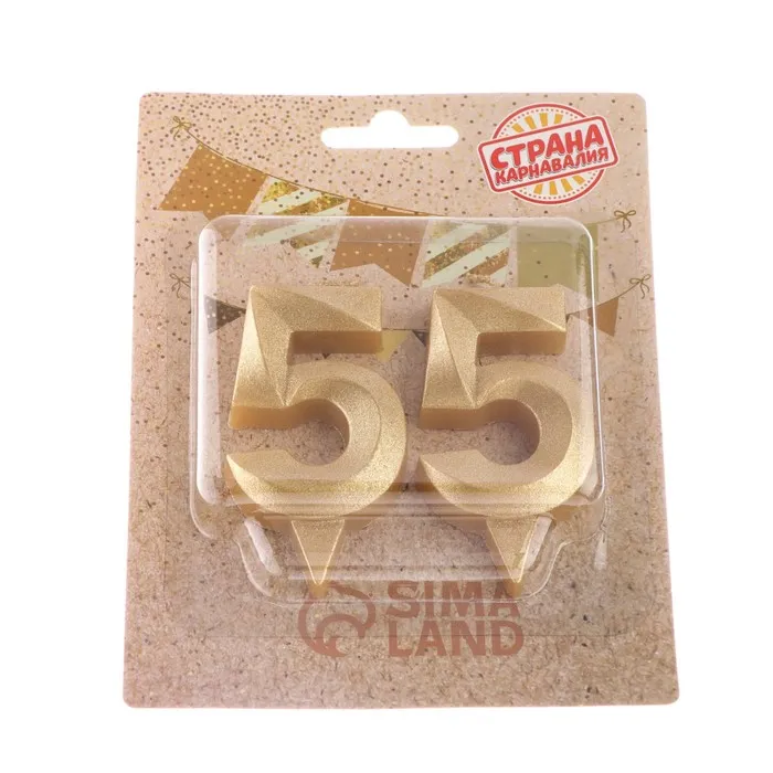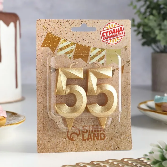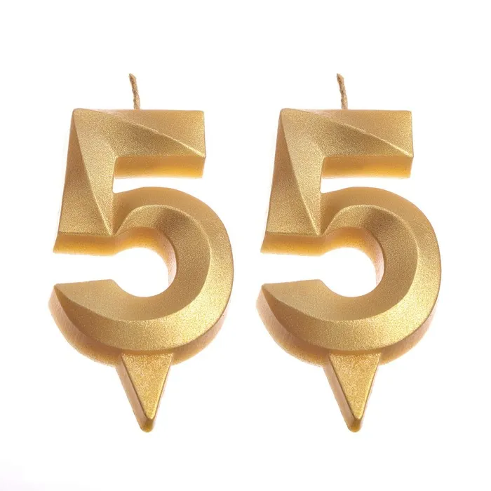 Свеча в торт юбилейная «Грань» (набор 2 в 1), цифра 55, золотой металлик, 6.5 см — Характеристики