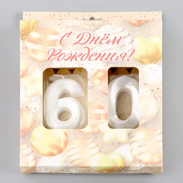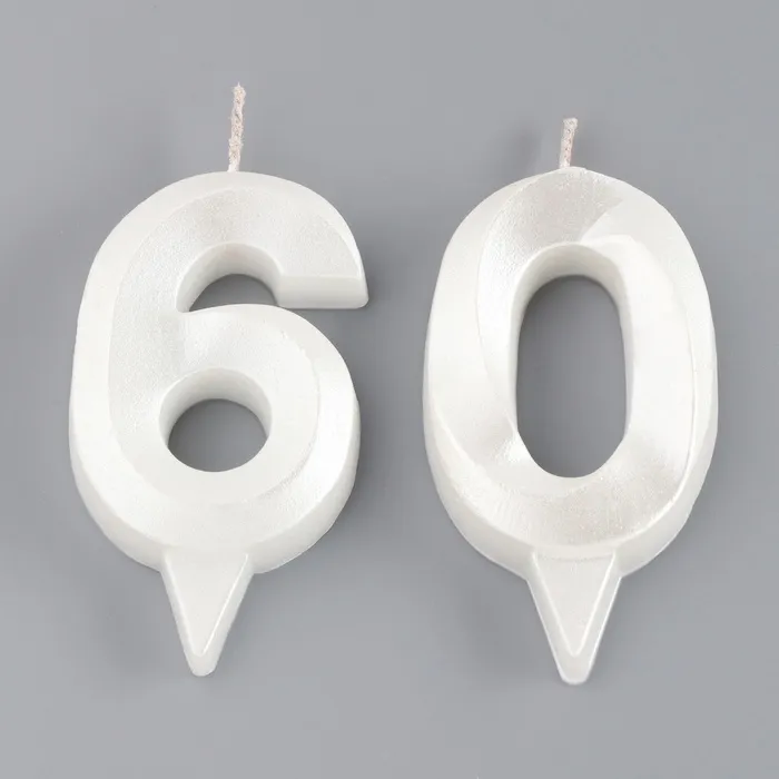 Свеча в торт юбилейная «Грань» (набор 2 в 1), цифра 60, жемчужный, 6.5 см — Характеристики