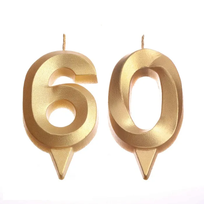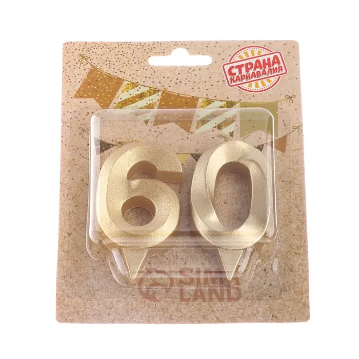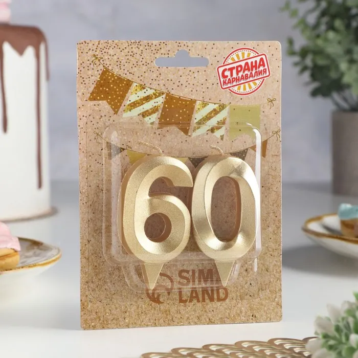 Свеча в торт юбилейная «Грань» (набор 2 в 1), цифра 60, золотой металлик, 6.5 см — Характеристики