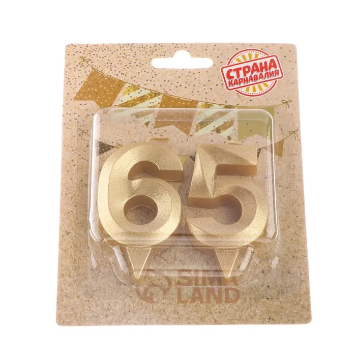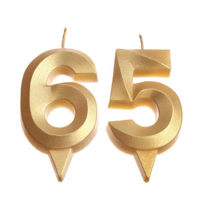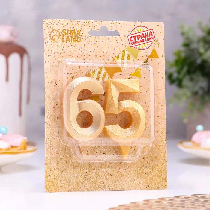 Свеча в торт юбилейная «Грань» (набор 2 в 1), цифра 65, цифра 56, золотой металлик, 6.5 см — Характеристики