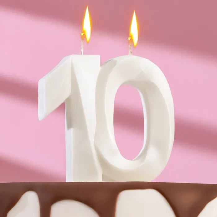 Свеча в торт юбилейная «Грань», цифра 10, жемчужный, 6.5 см — Характеристики