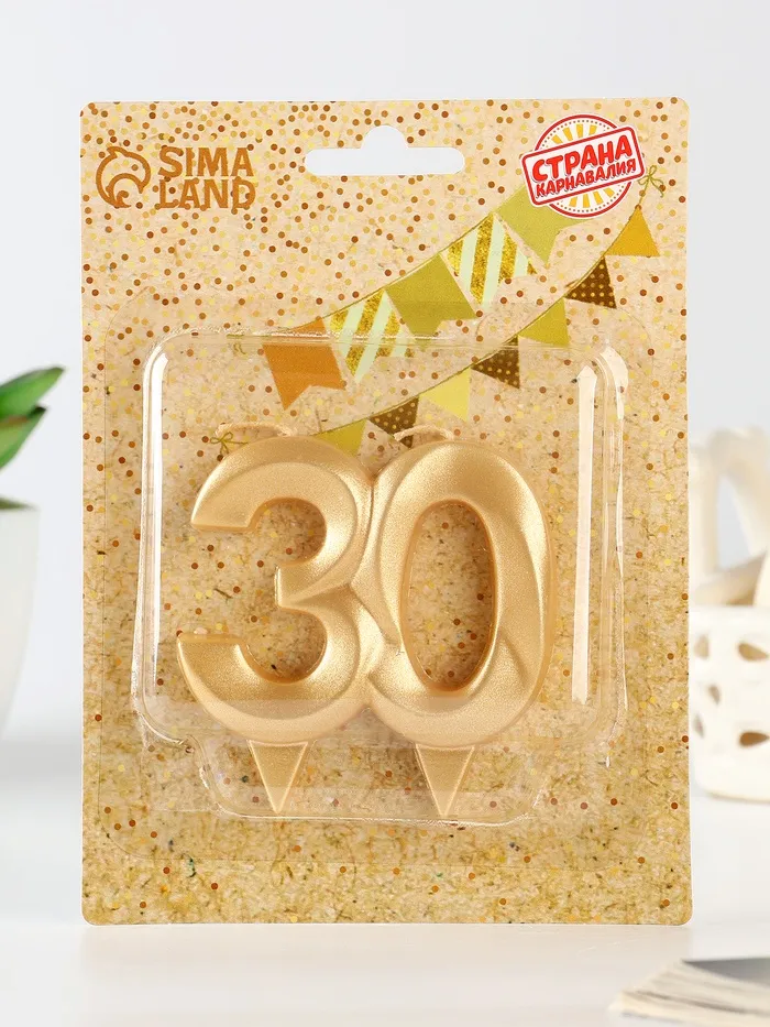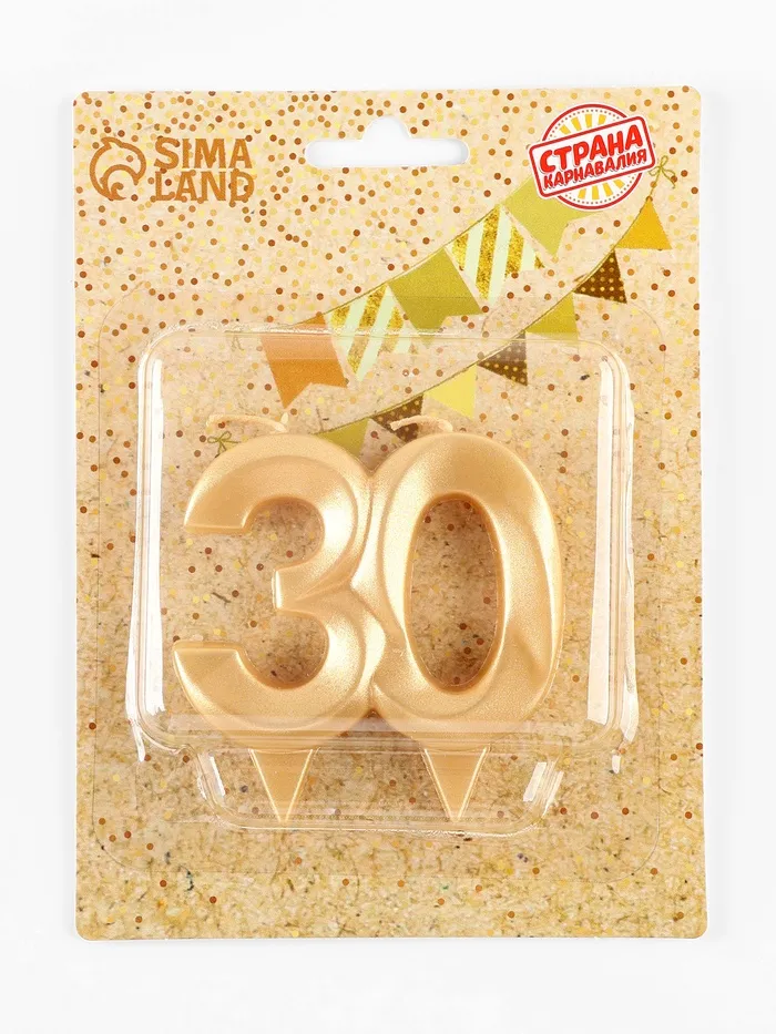 Свеча в торт юбилейная «Грань», цифра 30, золотой металлик, 6.5 см — Характеристики