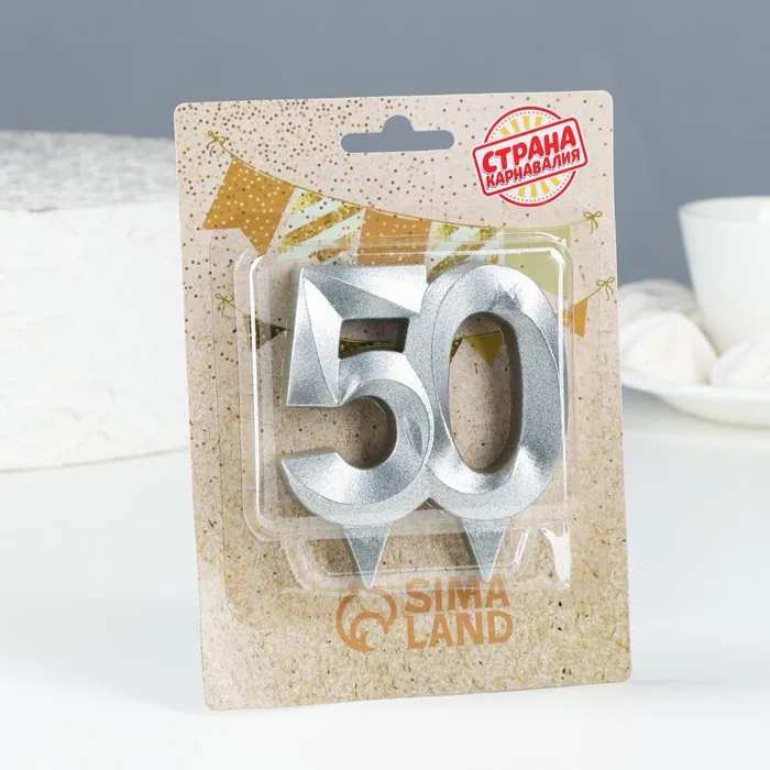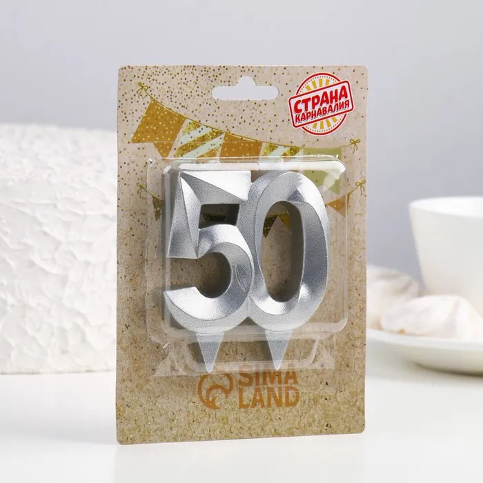 Свеча в торт юбилейная «Грань», цифра 50, серебряный металлик, 6.5 см — Характеристики