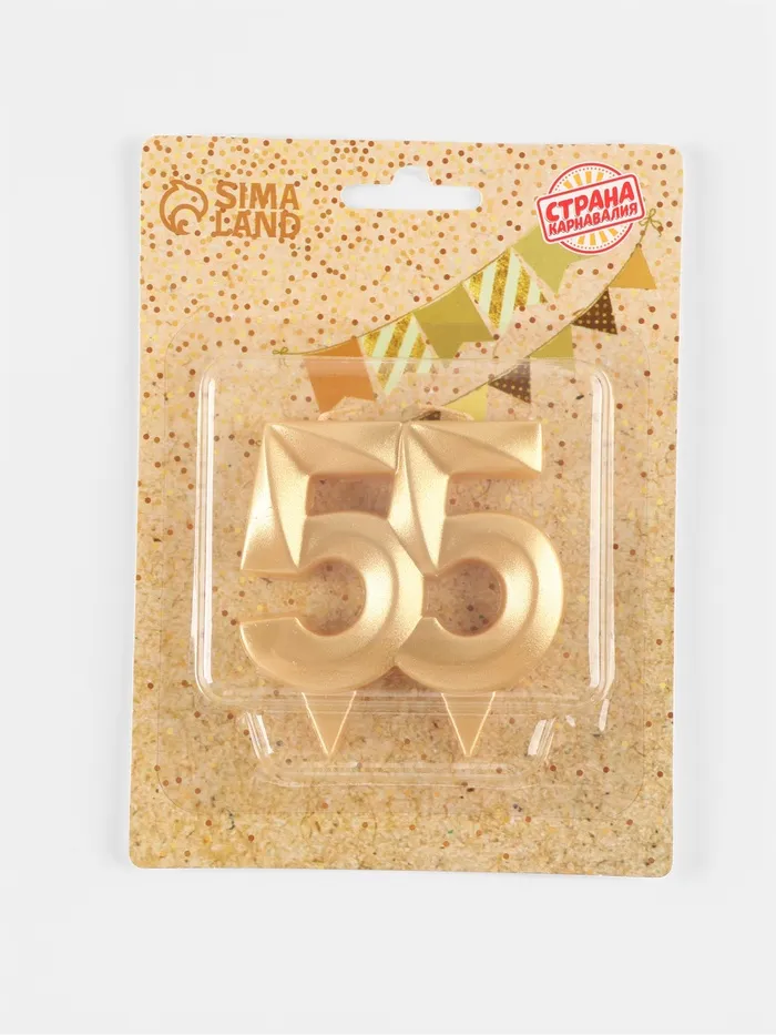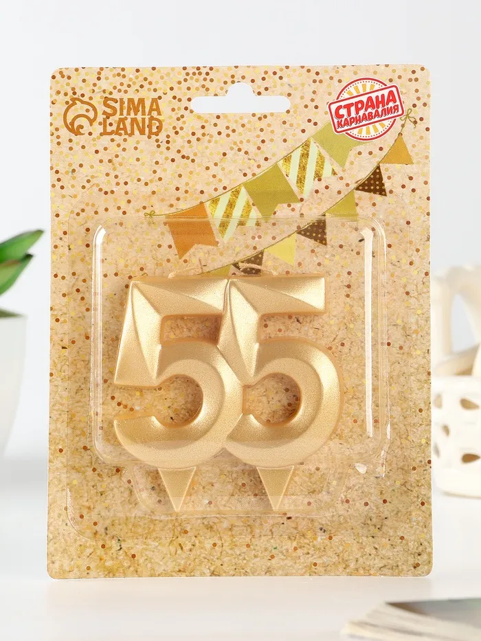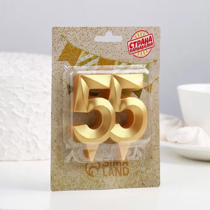 Свеча в торт юбилейная «Грань», цифра 55, золотой металлик, 6.5 см — Характеристики