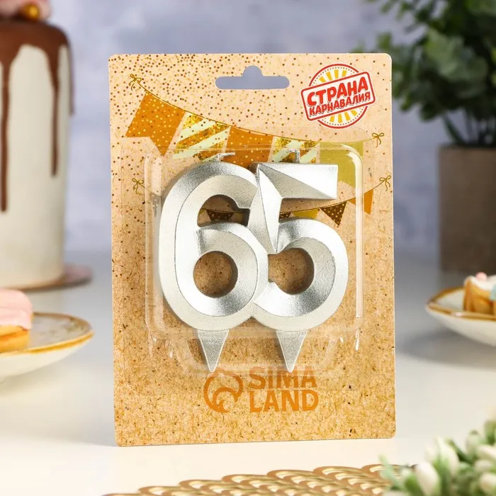 Свеча в торт юбилейная «Грань», цифра 65, серебряный металлик, 6.5 см — Характеристики