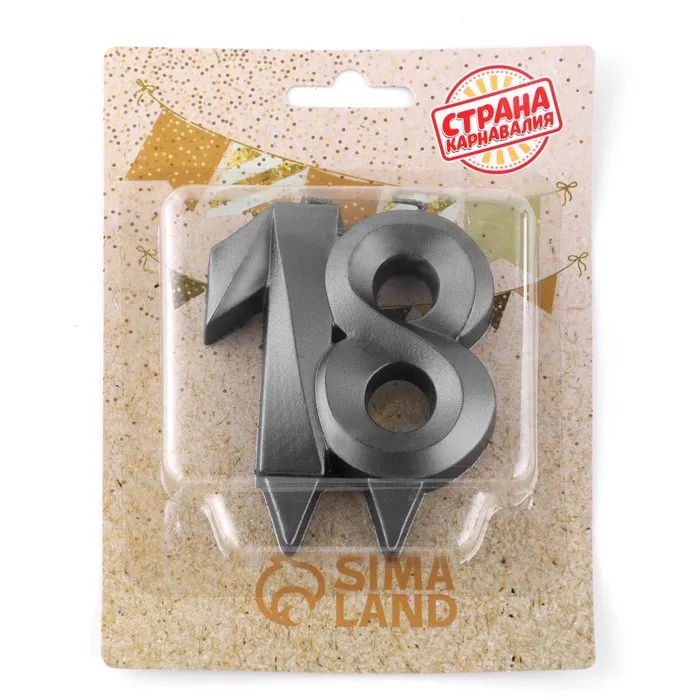 Свеча в торт юбилейная «Грань»,,цифра 18,, графит, 6.5 см — Характеристики