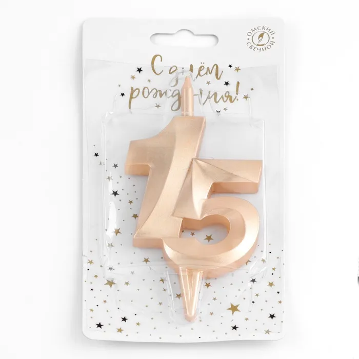 Свеча в торт «Юбилейная», цифра 15, 10 см, шампань — Характеристики