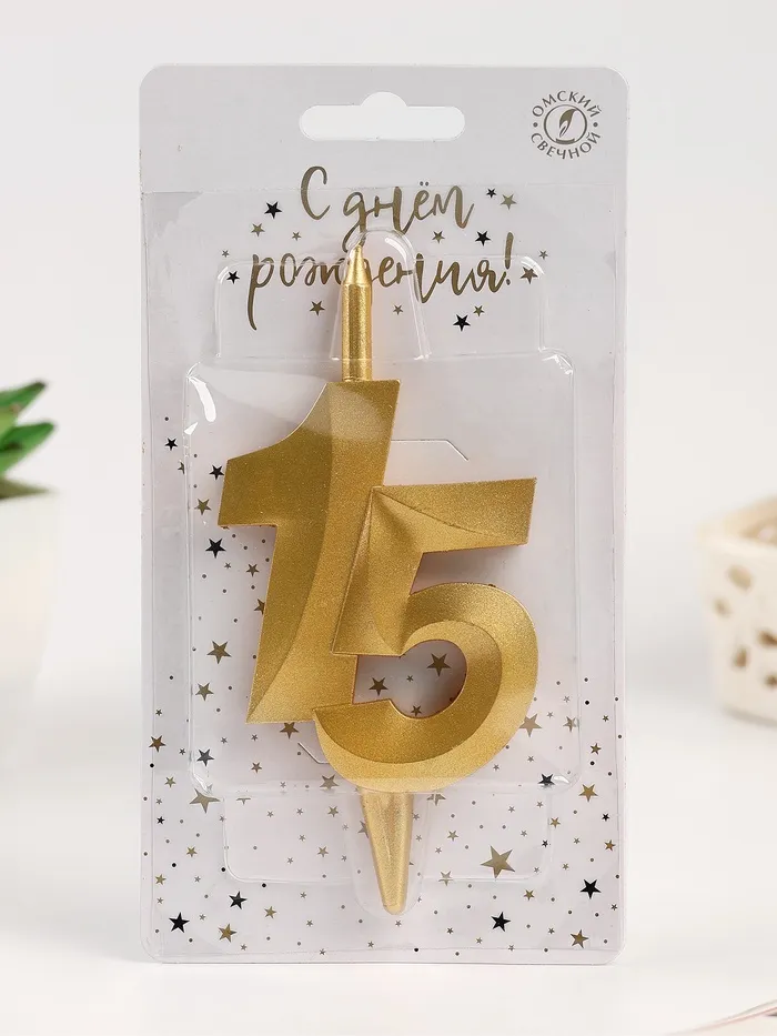 Свеча в торт «Юбилейная», цифра 15, золотая — Характеристики