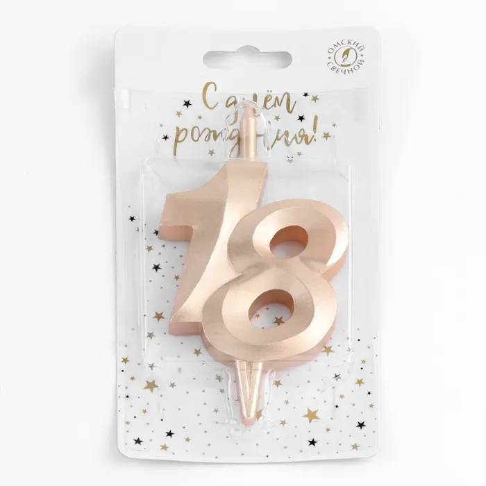 Свеча в торт «Юбилейная», цифра 18, 10 см, шампань — Характеристики