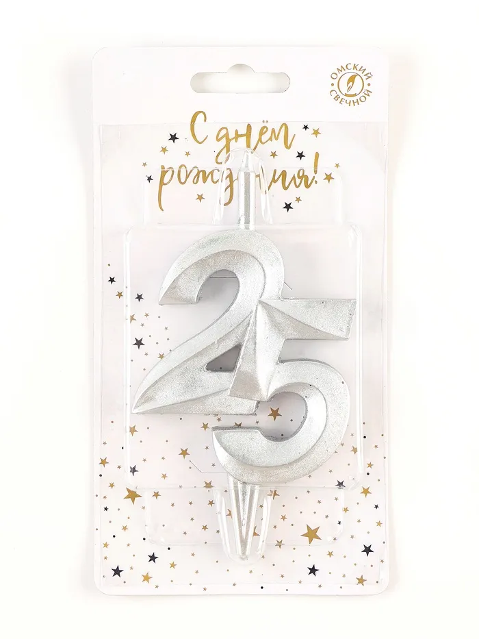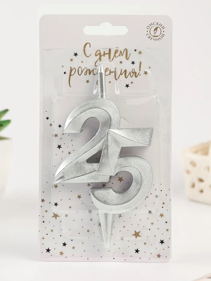 Свеча в торт «Юбилейная», цифра 25, серебряная — Характеристики