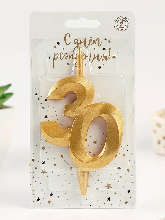 Свеча в торт «Юбилейная», цифра 30, золотая — Характеристики
