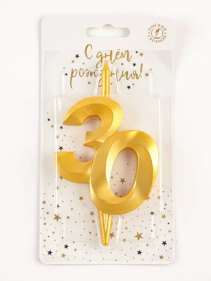 Свеча в торт «Юбилейная», цифра 30, золотая