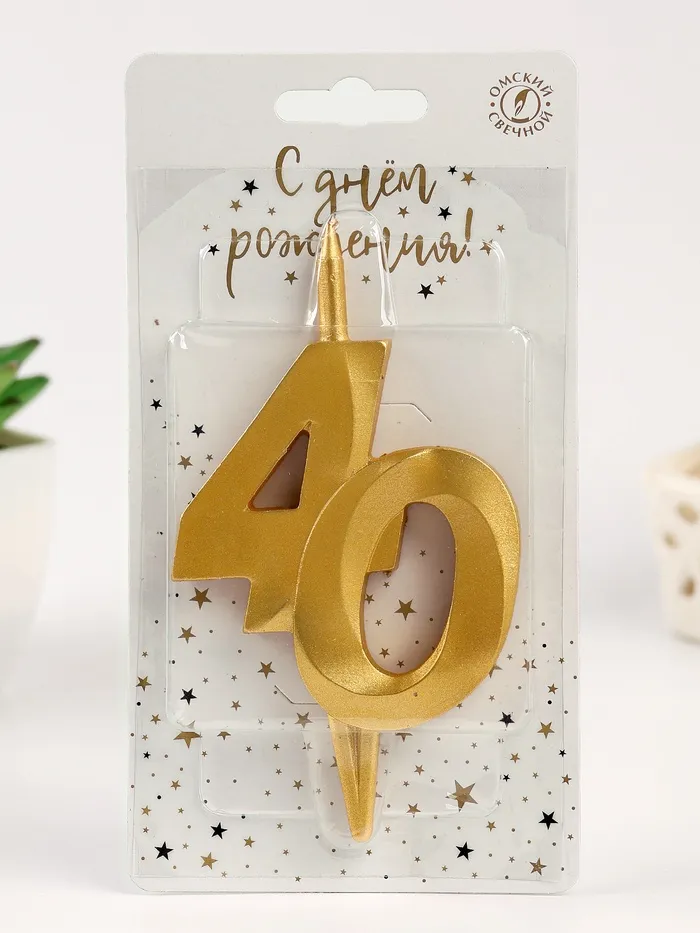 Свеча в торт «Юбилейная», цифра 40, золотая — Характеристики