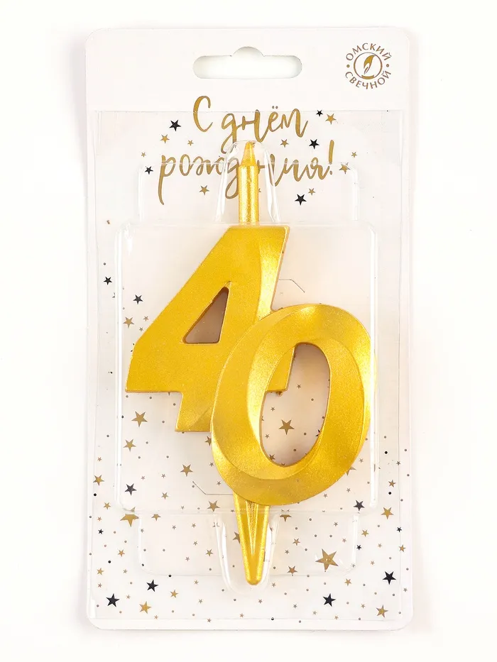 Свеча в торт «Юбилейная», цифра 40, золотая