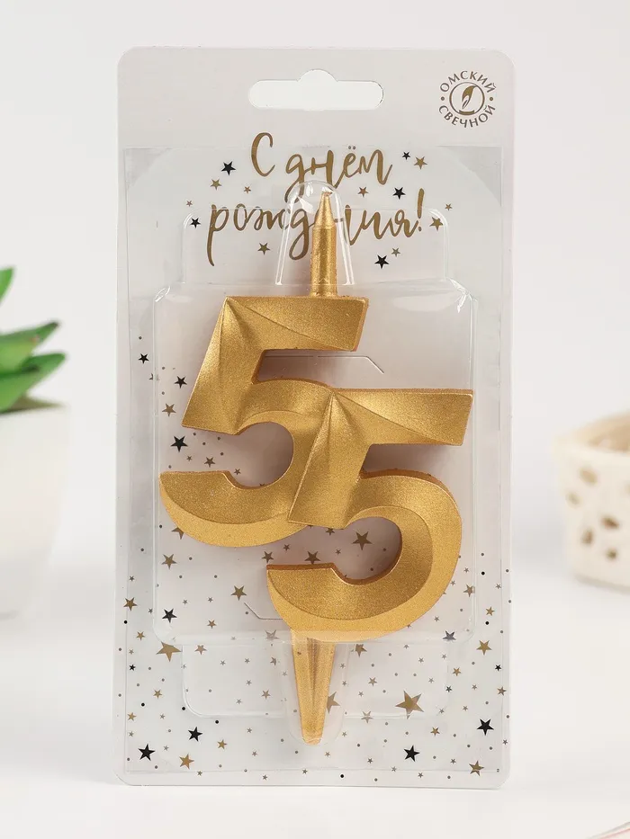 Свеча в торт «Юбилейная», цифра 55, золотая