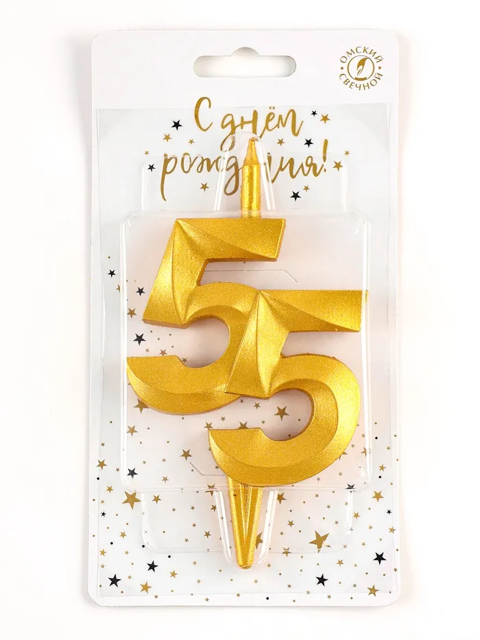 Свеча в торт «Юбилейная», цифра 55, золотая — Характеристики