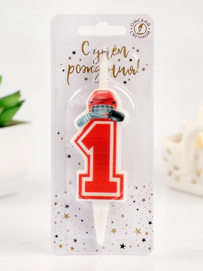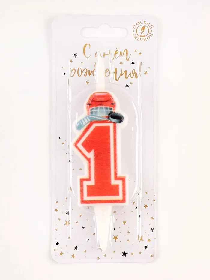 Свеча в торт «Хоккейная», цифра 1, красная