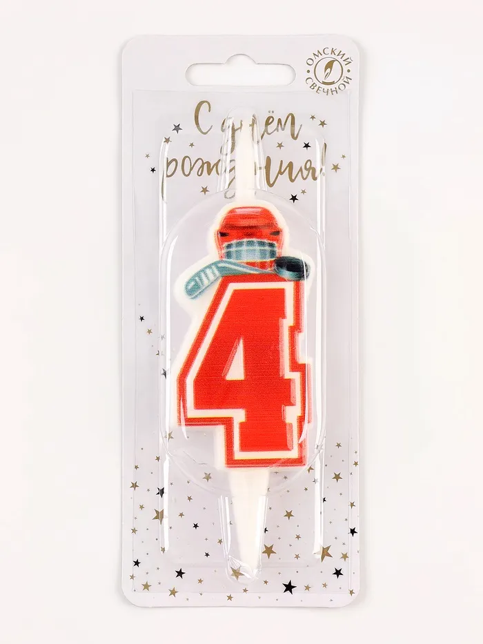 Свеча в торт «Хоккейная», цифра 4, красная