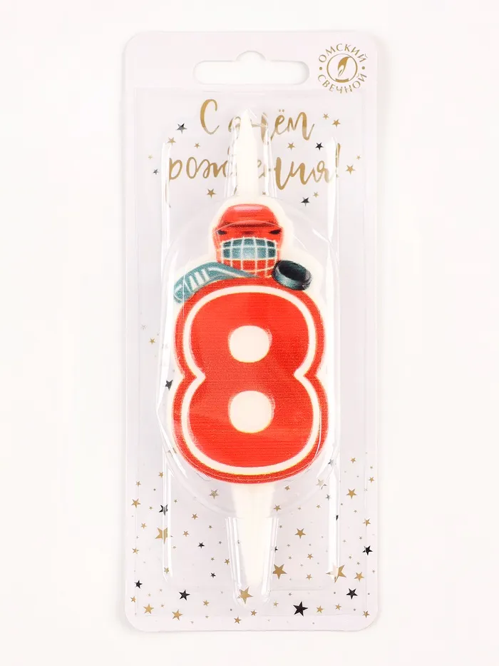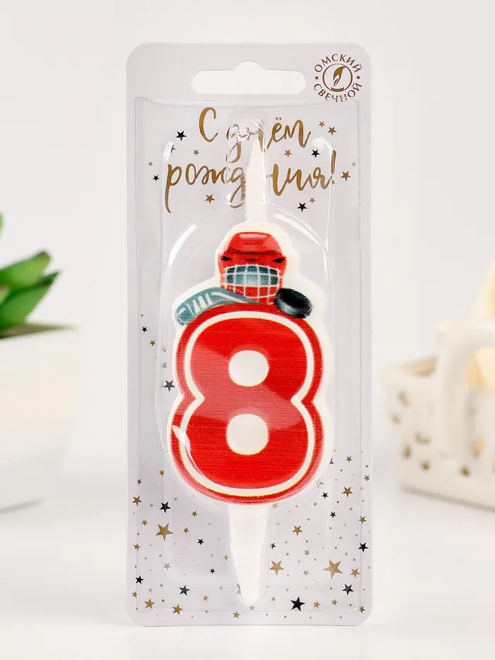 Свеча в торт «Хоккейная», цифра 8, красная — Характеристики