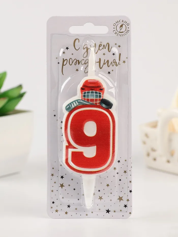 Свеча в торт «Хоккейная», цифра 9, красная — Характеристики