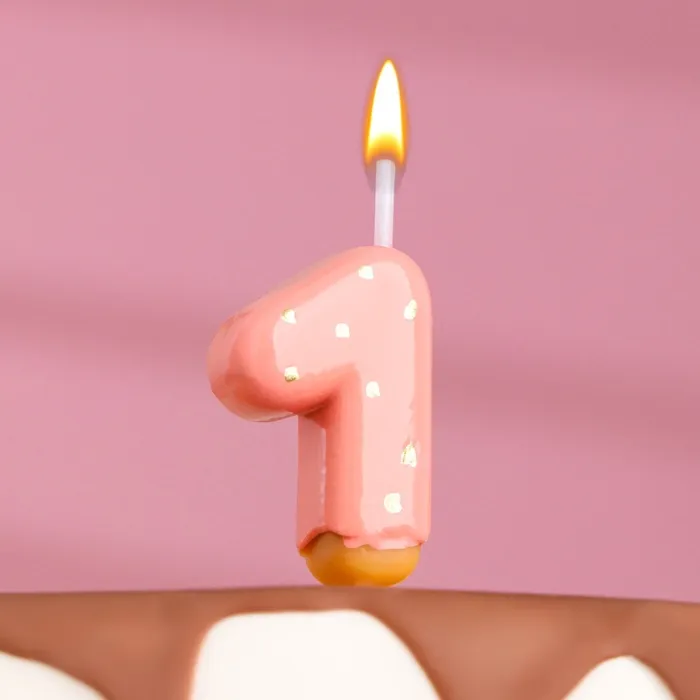 Свеча в торт «Клубничная глазурь», цифра 1, розовая, 3.8 см — Характеристики