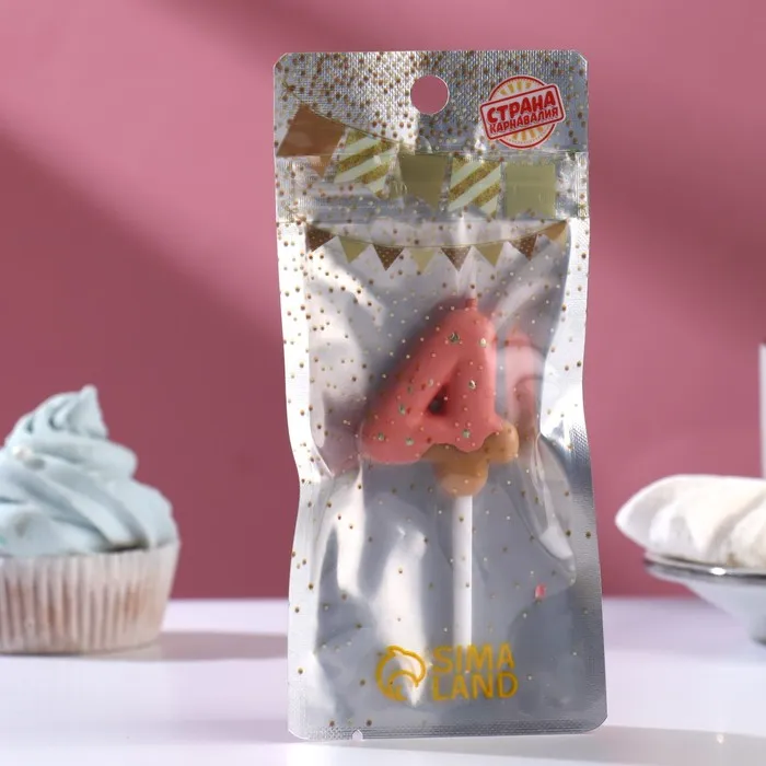 Свеча в торт «Клубничная глазурь», цифра 4, розовая, 3.8 см — Характеристики