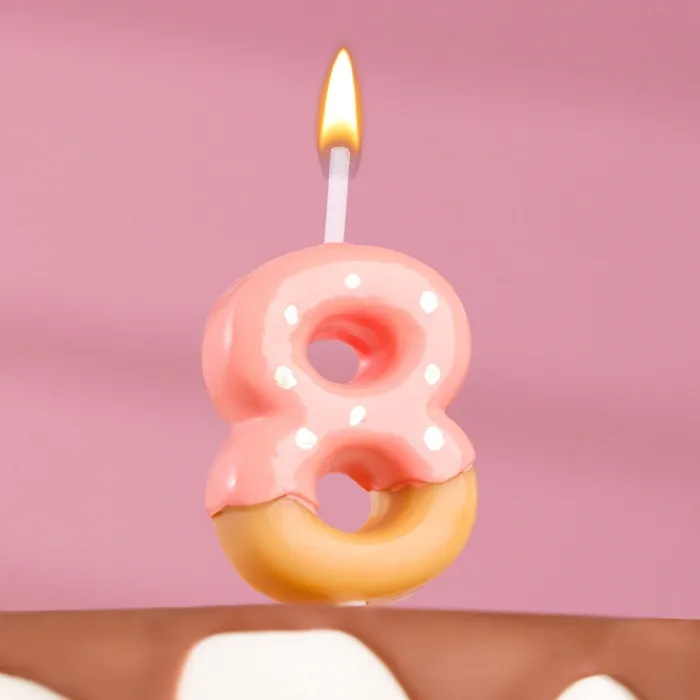 Свеча в торт «Клубничная глазурь», цифра 8, розовая, 3.8 см — Характеристики