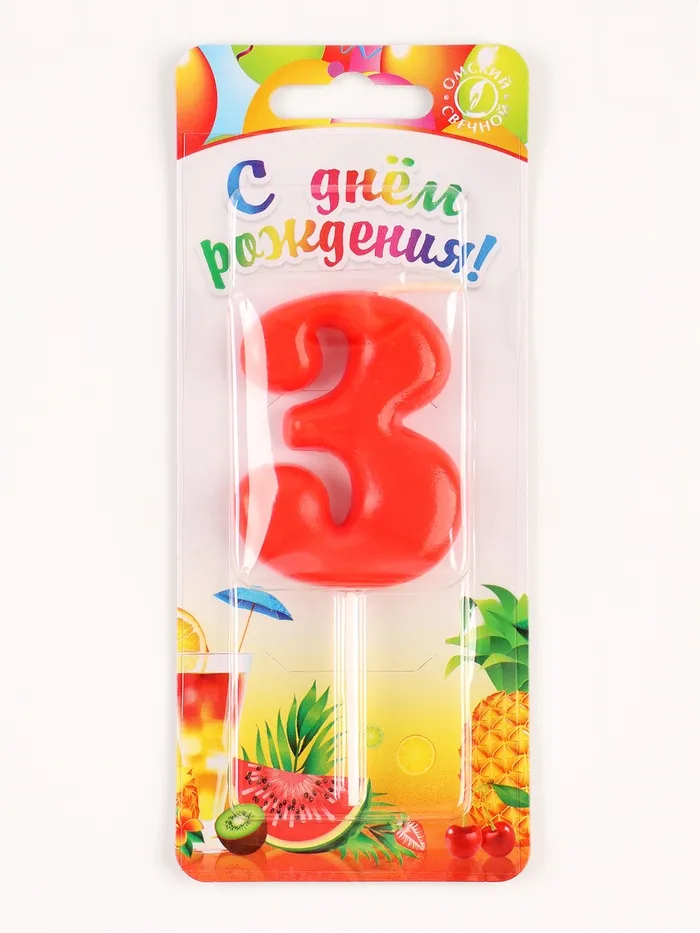 Свеча в торт «Красная», цифра 3 — Характеристики