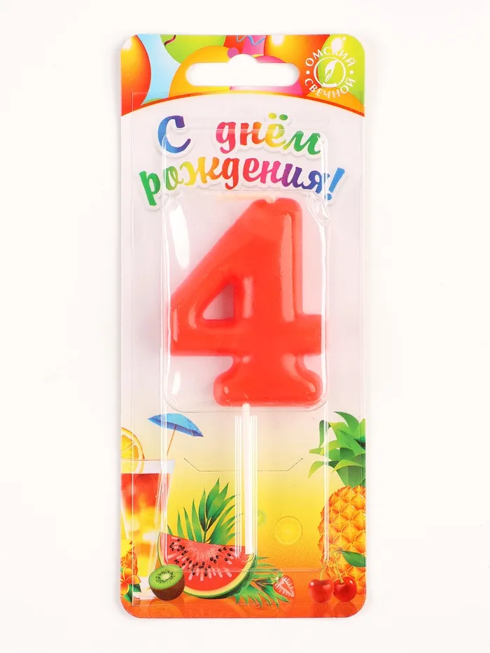 Свеча в торт «Красная», цифра 4 — Характеристики