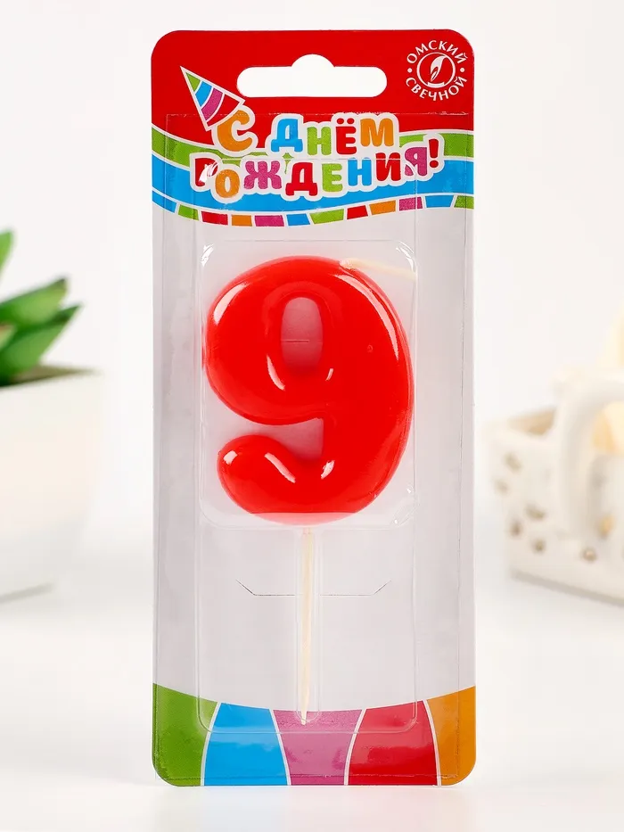 Свеча в торт «Красная», цифра 9 — Характеристики