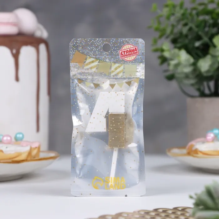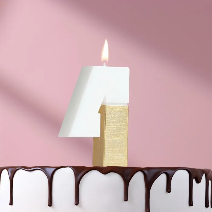 Свеча в торт «Манхеттен», цифра 4, белая с золотом, 5 см — Характеристики