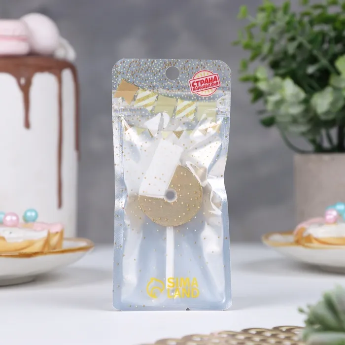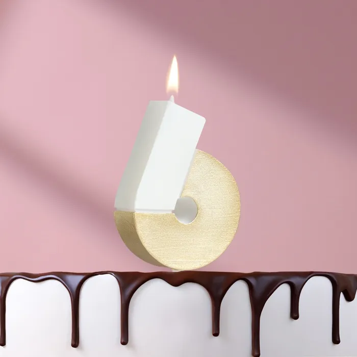 Свеча в торт «Манхеттен», цифра 6, белая с золотом, 5 см — Характеристики