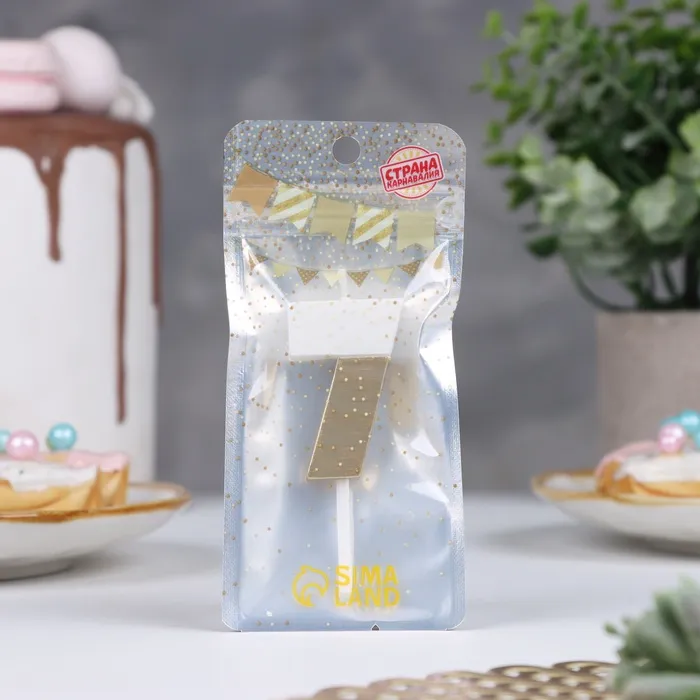 Свеча в торт «Манхеттен», цифра 7, белая с золотом, 5 см — Характеристики