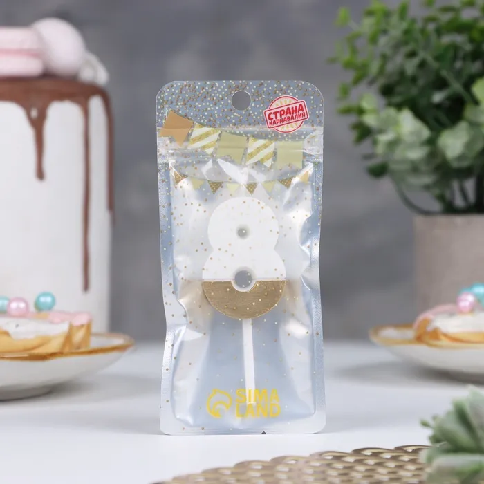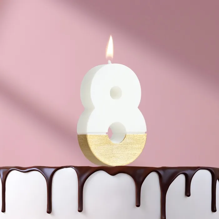 Свеча в торт «Манхеттен», цифра 8, белая с золотом, 5 см — Характеристики