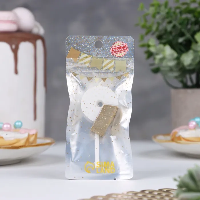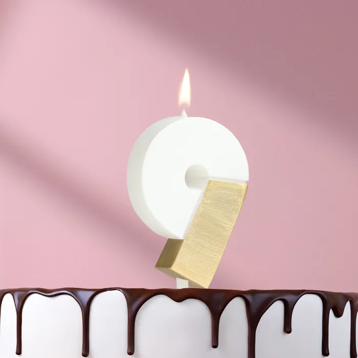Свеча в торт «Манхеттен», цифра 9, белая с золотом, 5 см — Характеристики