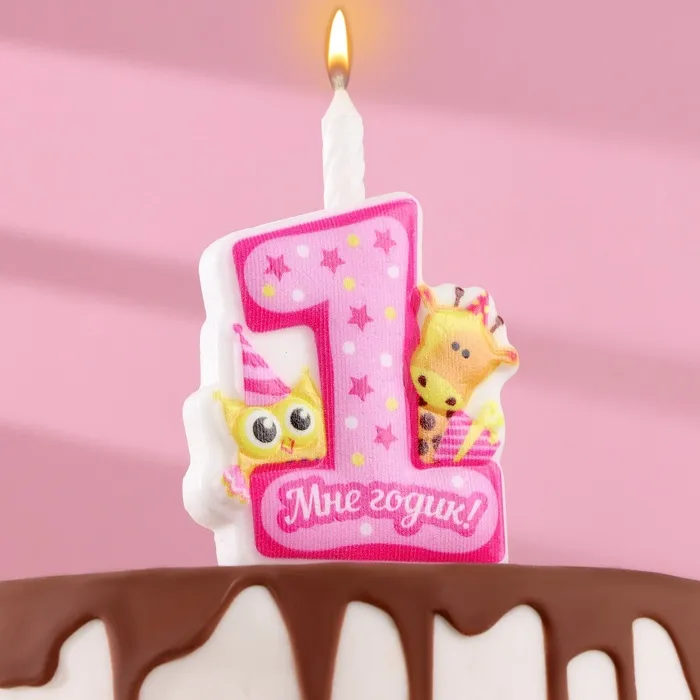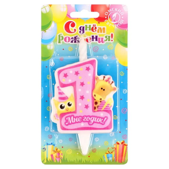 Свеча в торт «Мне годик!» с жирафом и совой, 9.7 см, 12 мин, 40 г — Характеристики