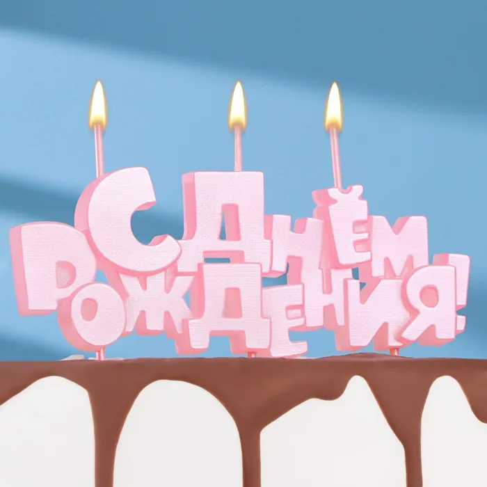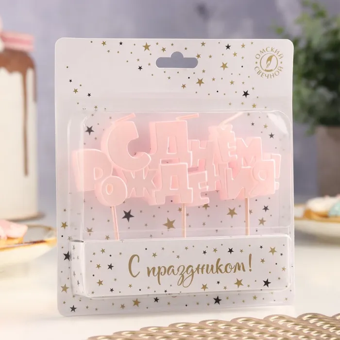 Свеча в торт на шпажках «С Днем рождения», розовая, 5.3 см — Характеристики