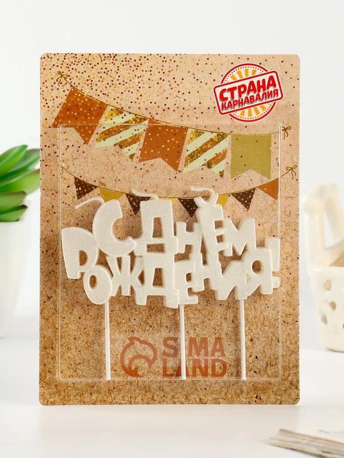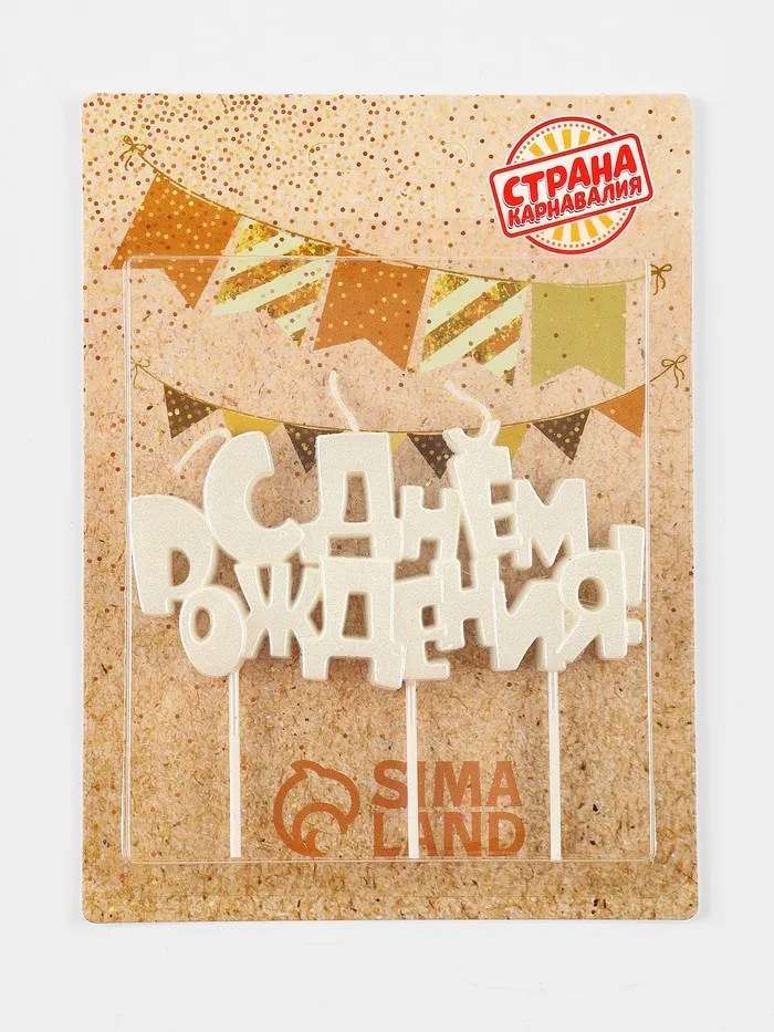 Свеча в торт на шпажках «С днем рождения», жемчужный перламутр — Характеристики