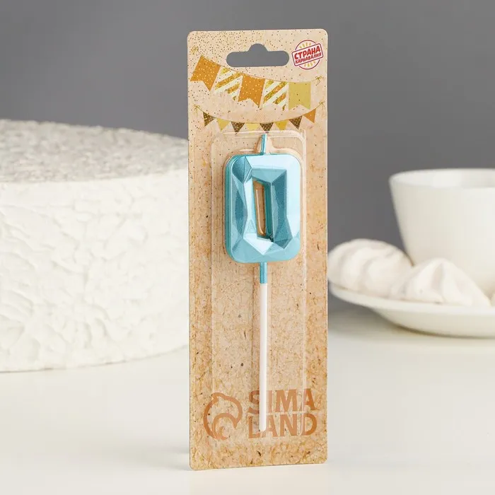 Свеча в торт на шпажке «Алмаз», цифра 0, голубая, 5 см — Характеристики