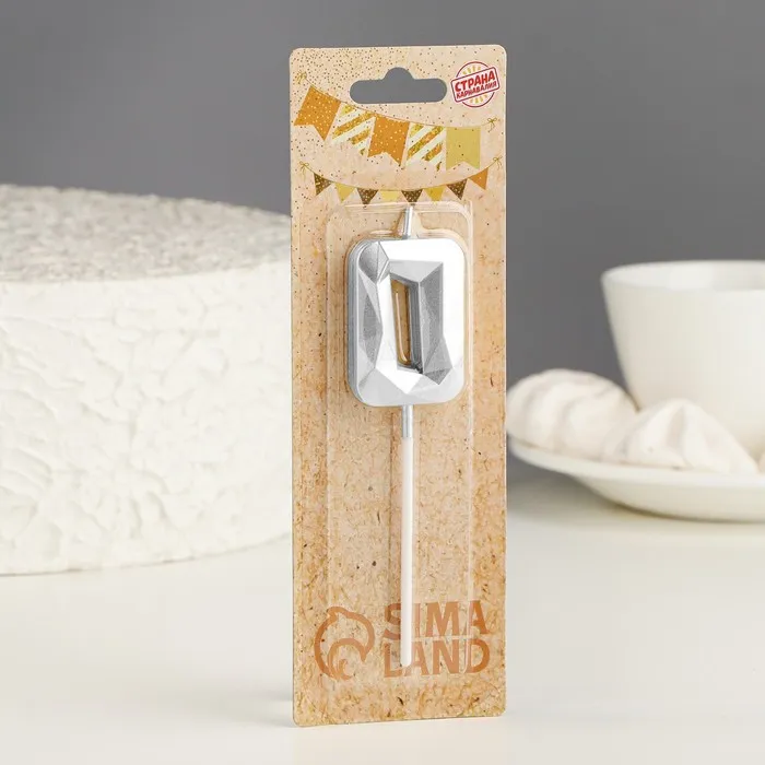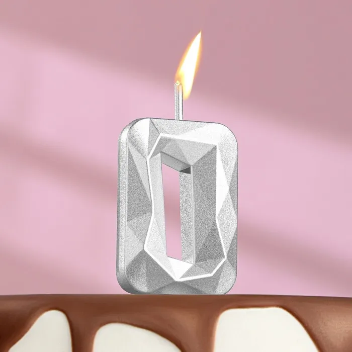 Свеча в торт на шпажке «Алмаз», цифра 0, серебряная, 5×2.6 см — Характеристики