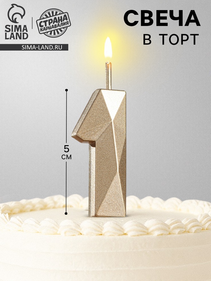 Свеча в торт на шпажке «Алмаз», цифра 1, шампань, 5×2.6 см — Характеристики