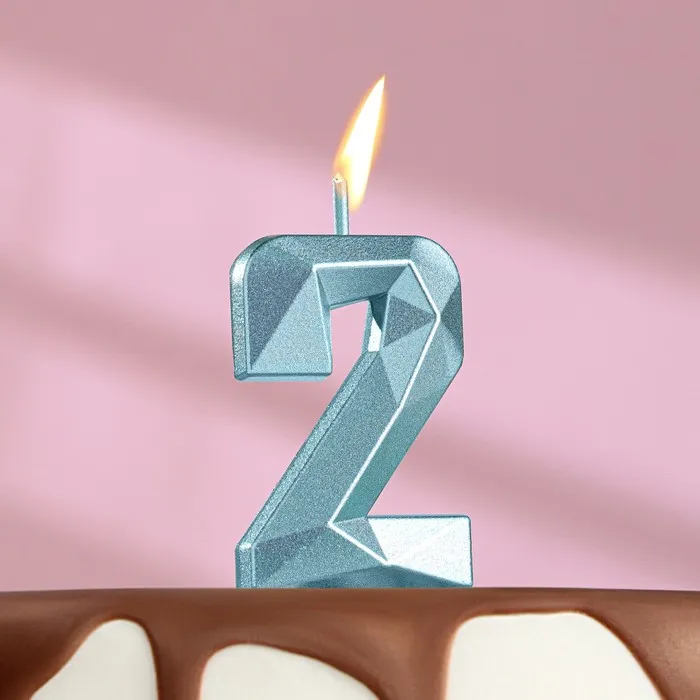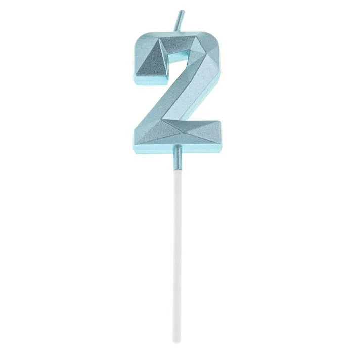 Свеча в торт на шпажке «Алмаз», цифра 2, голубая, 5 см