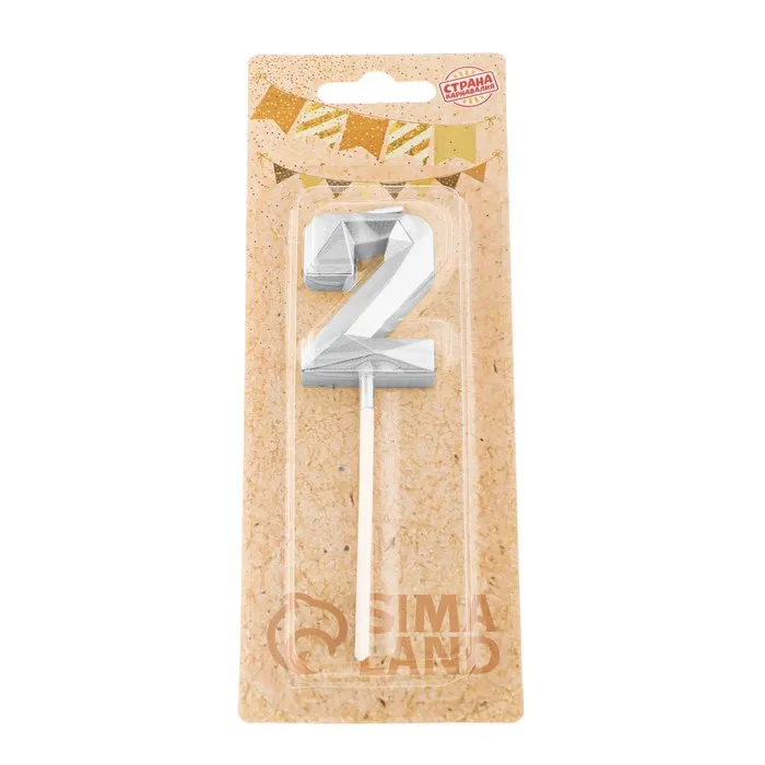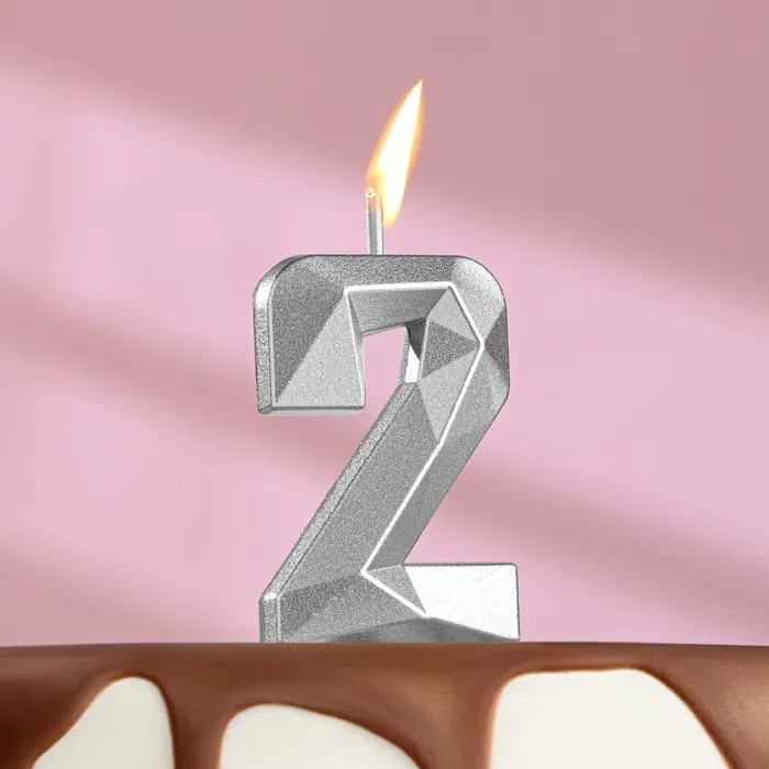 Свеча в торт на шпажке «Алмаз», цифра 2, серебряная, 5×2.6 см — Характеристики