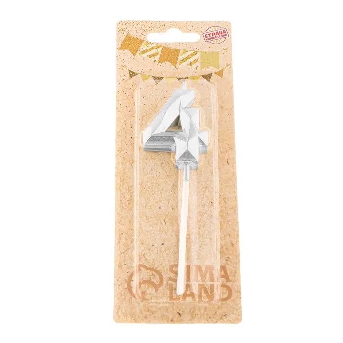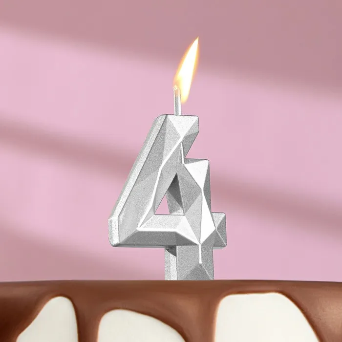 Свеча в торт на шпажке «Алмаз», цифра 4, серебряная, 5×2.6 см — Характеристики