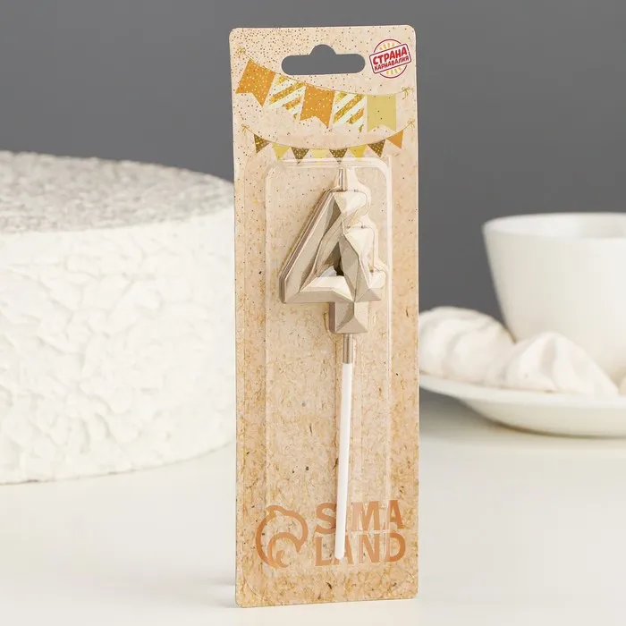 Свеча в торт на шпажке «Алмаз», цифра 4, шампань, 5×2.6 см — Характеристики