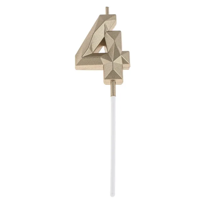 Свеча в торт на шпажке «Алмаз», цифра 4, шампань, 5×2.6 см