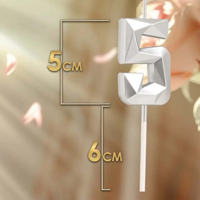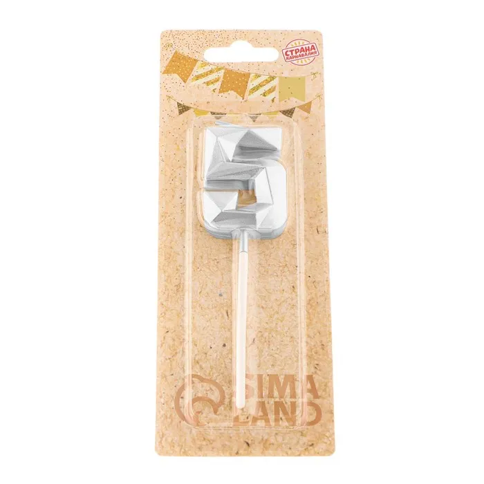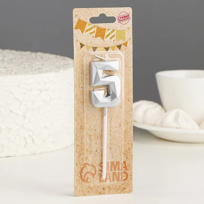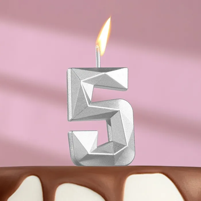 Свеча в торт на шпажке «Алмаз», цифра 5, серебряная, 5×2.6 см — Характеристики