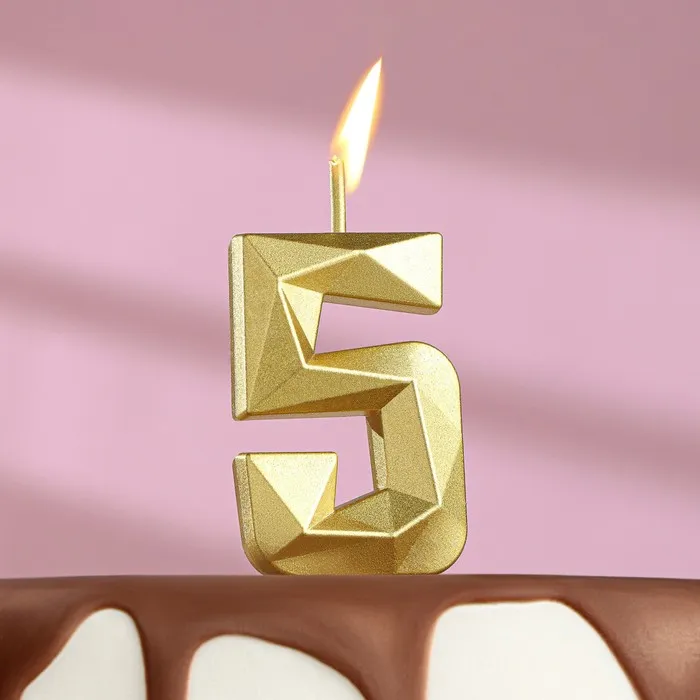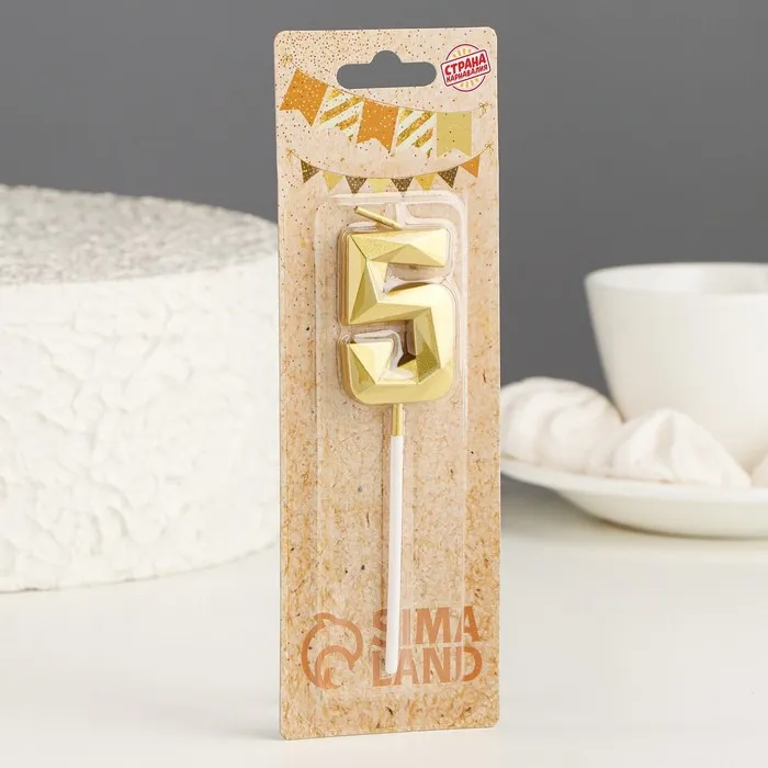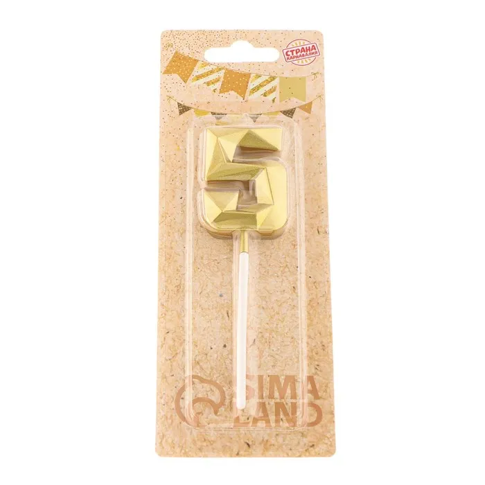 Свеча в торт на шпажке «Алмаз», цифра 5, золотая, 5 см — Характеристики